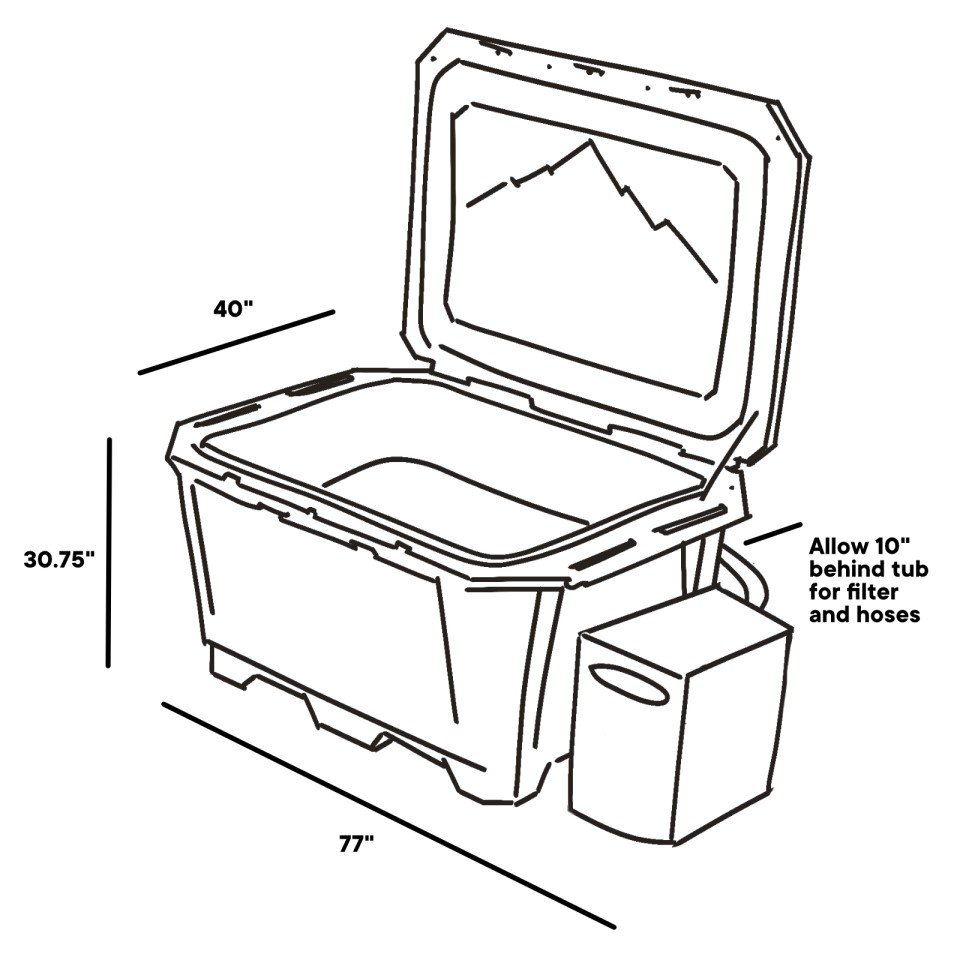 a sketch of the footprint and dimensions of the Wide Desert Plunge grizzly cold plunge tub
